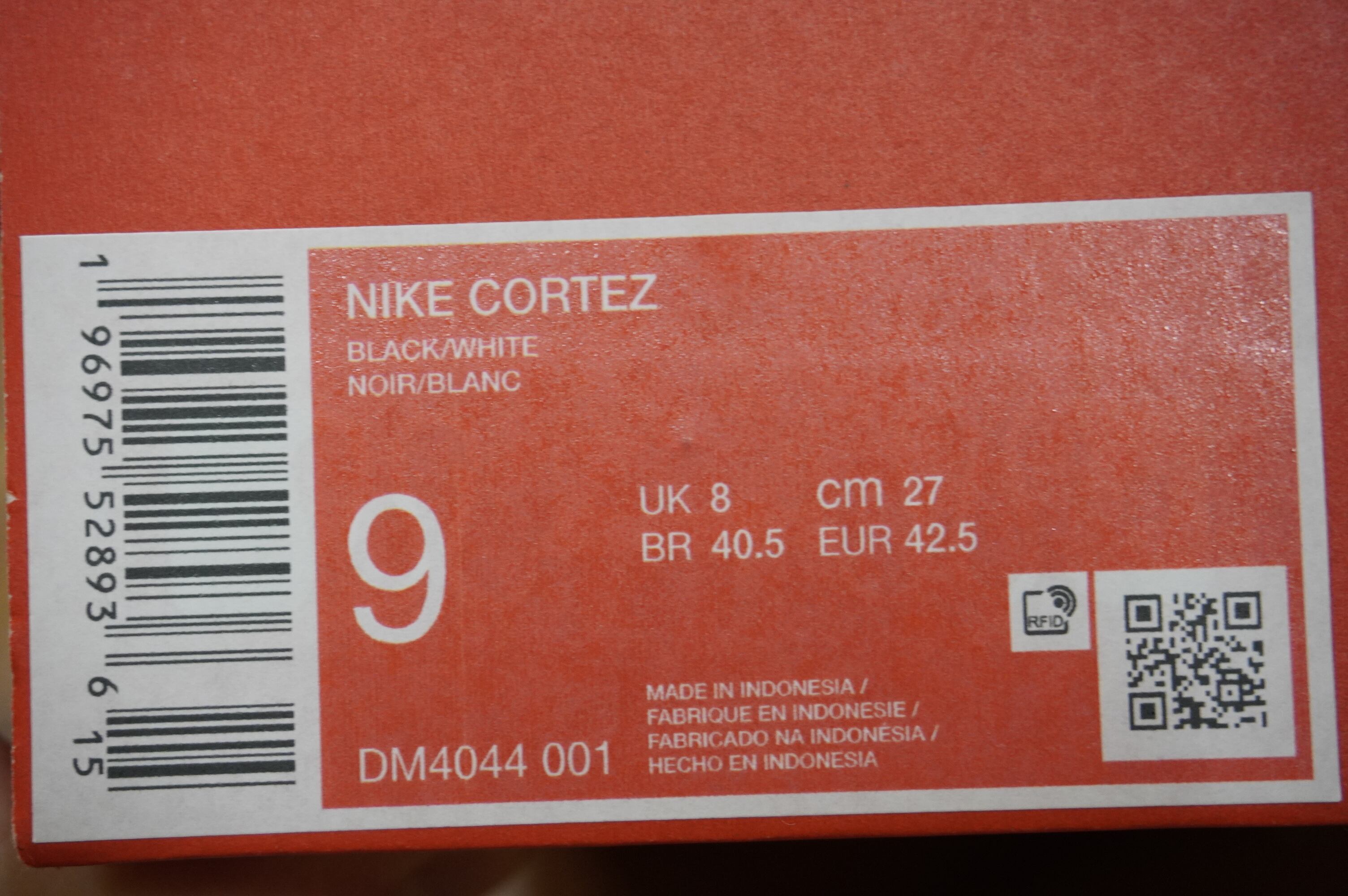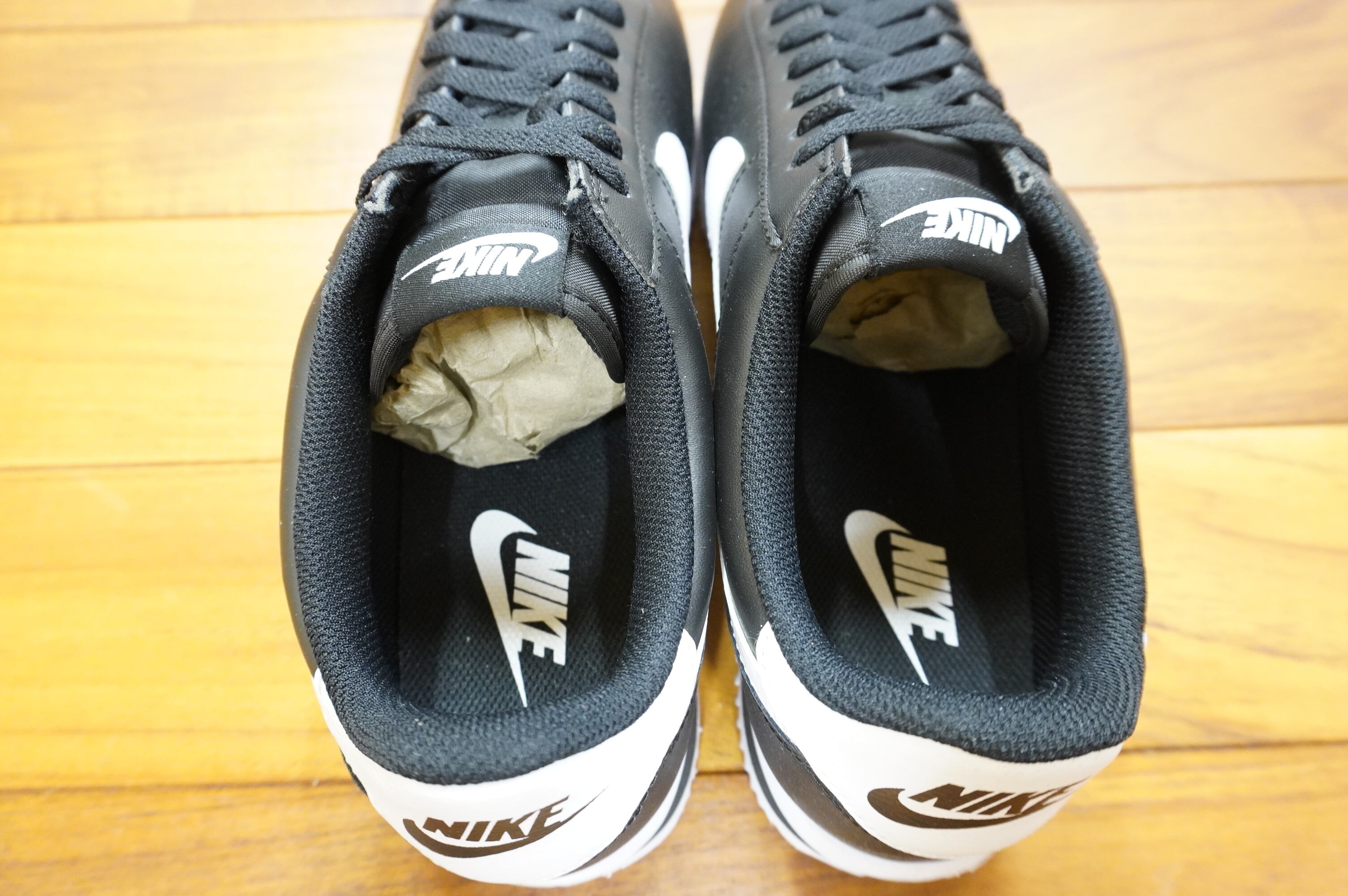 ◆合成皮革製のブラック/ホワイトスニーカー。ナイキの定番コルテッツです。新品未使用品です。2024年購入品。ケース有ですが一部ケースに傷あります。画像確認ください。