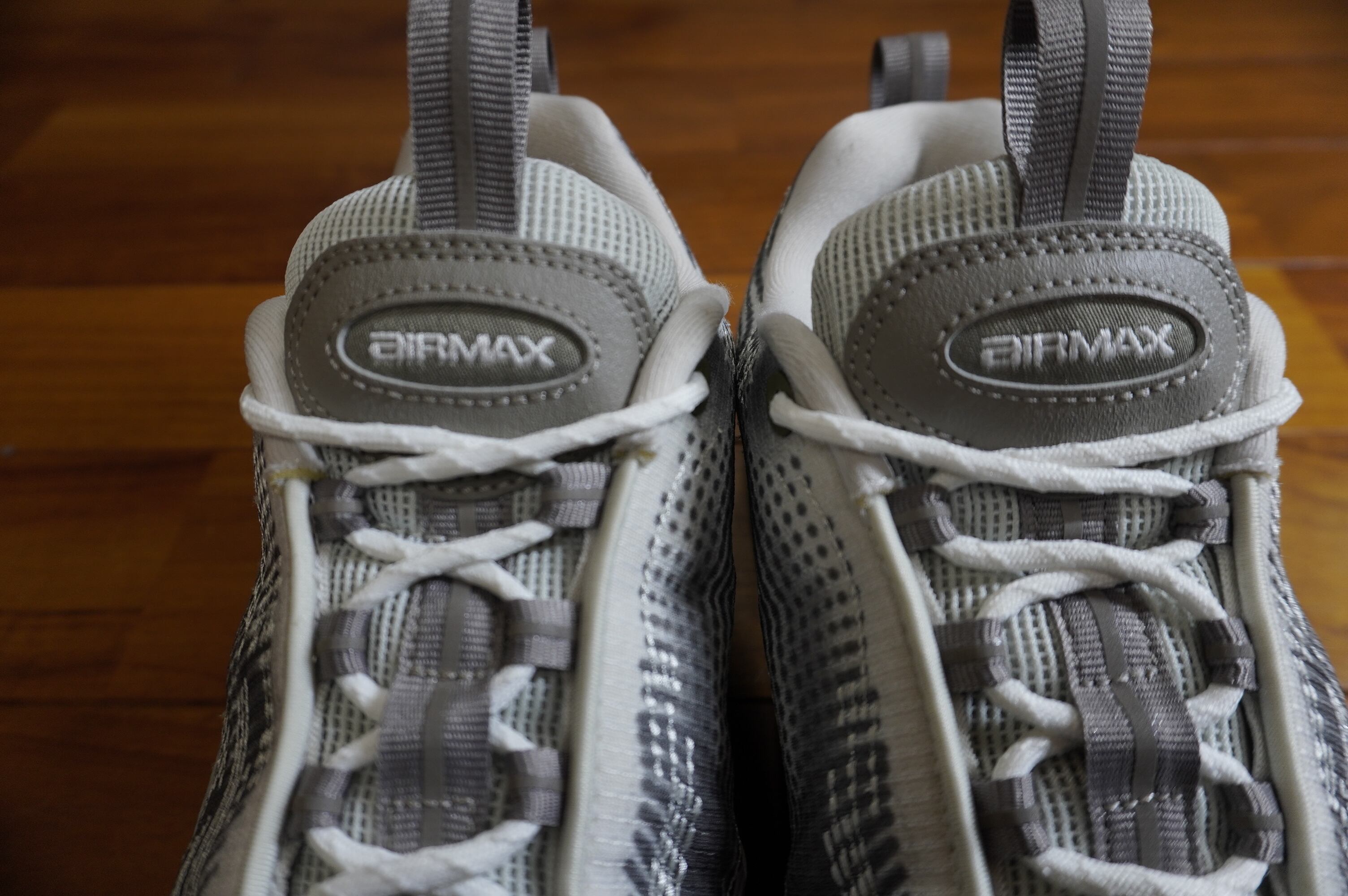 ◆エアーマックスDNです。メッシュアッパーとエアクッショニングを備えたグレーのNikeのスニーカーです。4.5回着用の美品です。インソールのロゴが擦れてますが全体的に状態良品です。ケース有ます。
