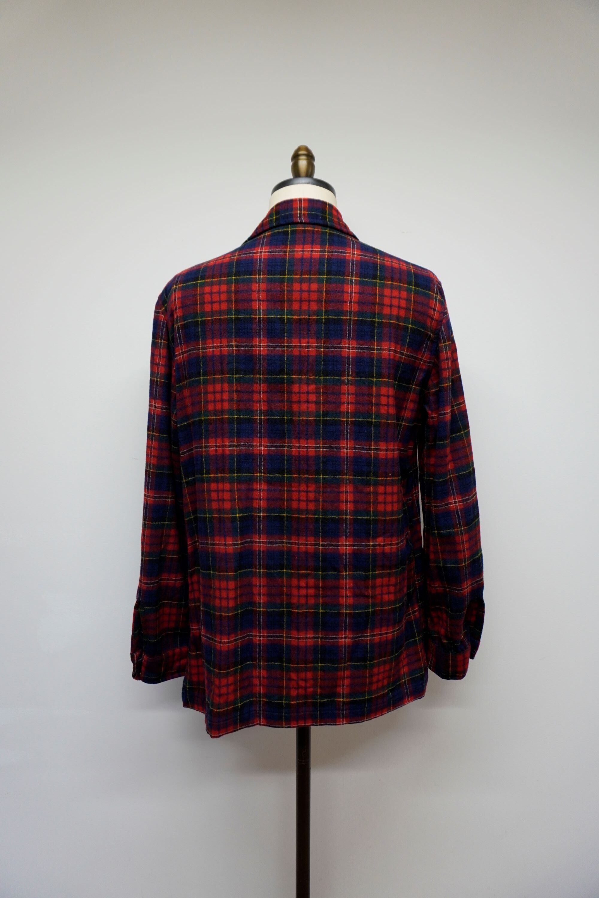 ◆ペンドルトンの80s物です。シャツジャケットモデルです。3ボタンのテーラード型ですが袖はシャツ仕様です。ペンドルトンらしい赤のチェックです。ポケットは3パッチのクルミボタンです。アメリカンな1着です。特に目立った汚れやダメージないかと思います。